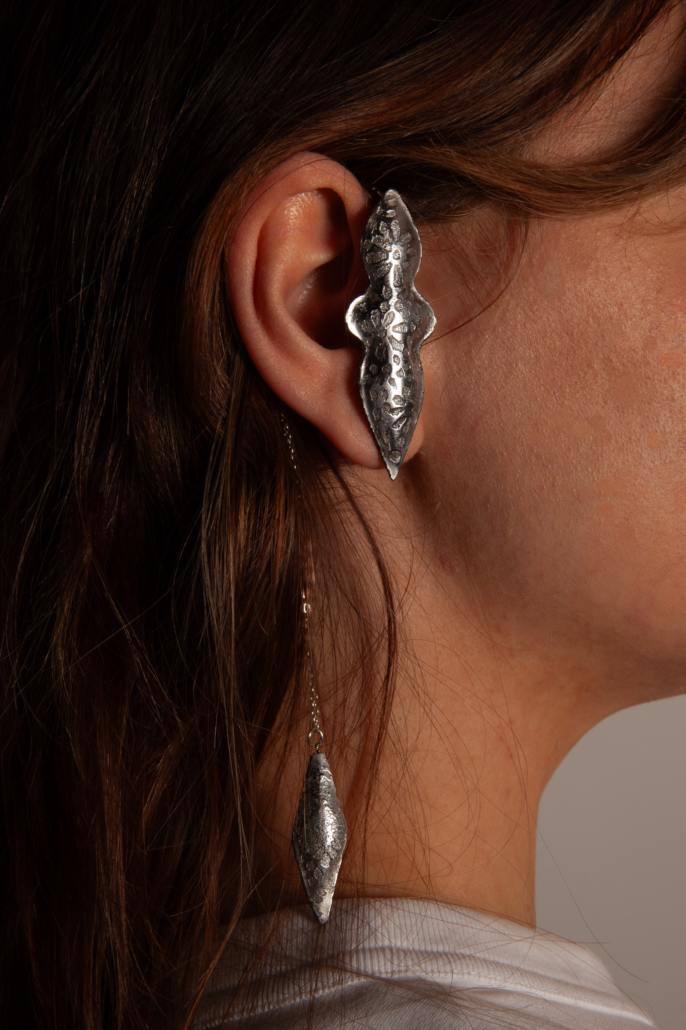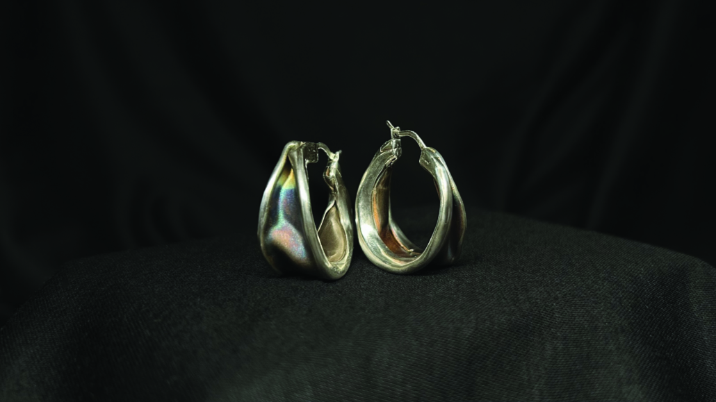 La création d’une paire de boucles d’oreille a été le prétexte pour la mise en valeur de ces états de surface; à découvrir absolument!
